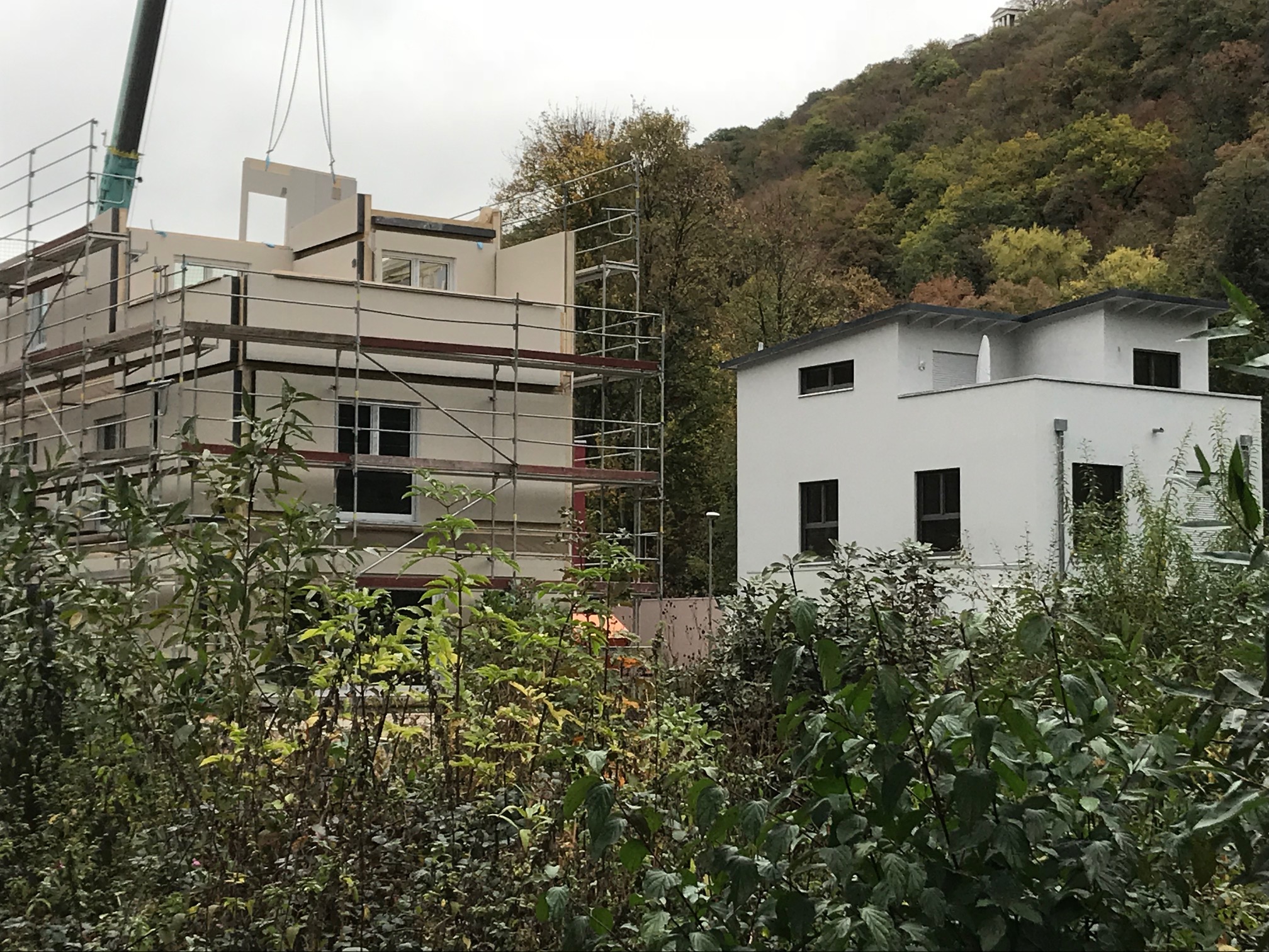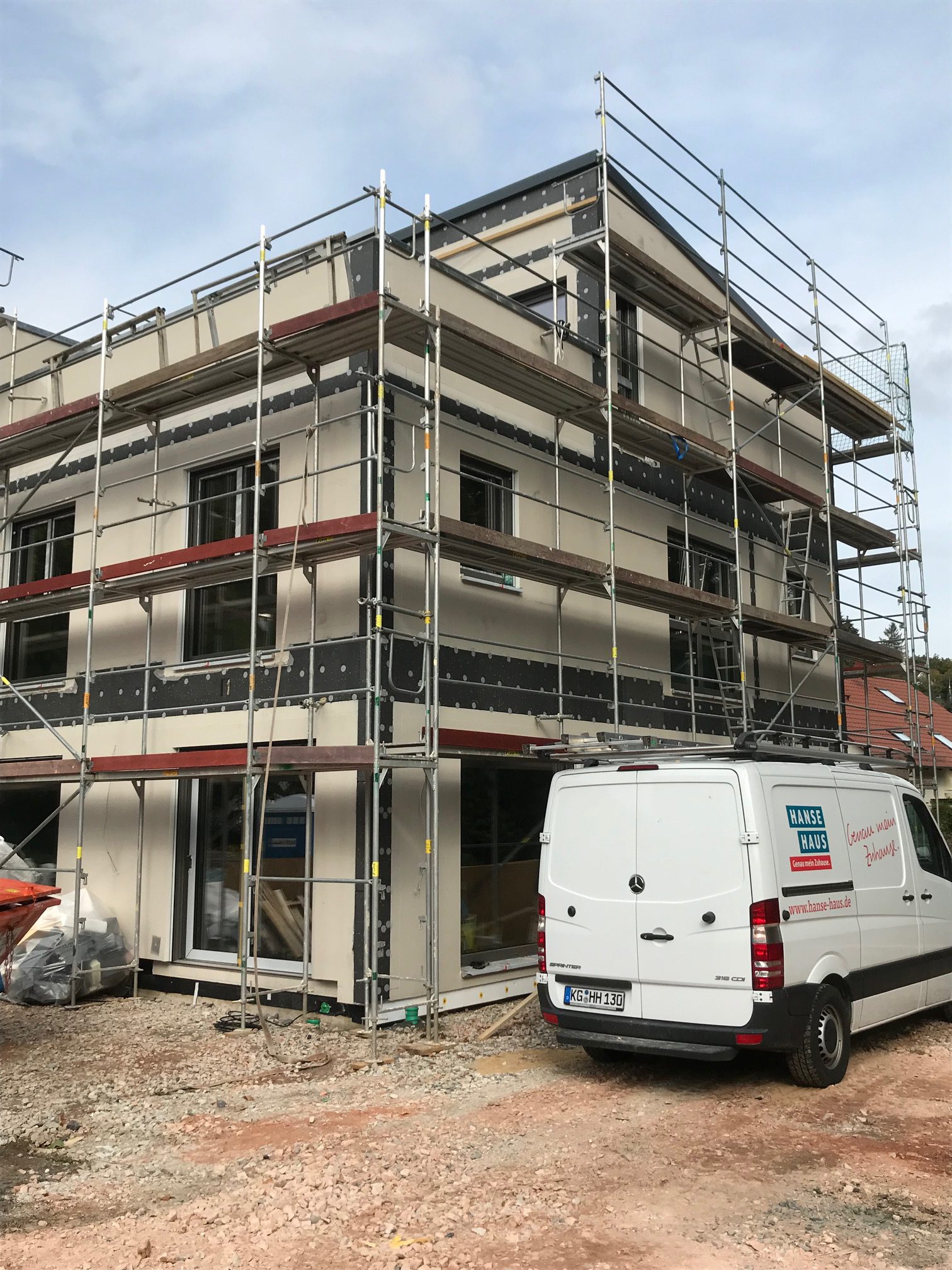 Hier mal ein kleiner aber feiner Blick hinter die Kulissen: In einem kleinen Baugebiet in Eppstein wurden von insgesamt elf Grundstücken, sieben bereits mit einem Hanse Haus bebaut. Der Bebauungsplan schreibt die Bauweise 2-geschossig mit Pultdach oder 2.5 geschossig (Staffelgeschoss mit grosser Dachterrasse ) vor. So konnten bisher zwei Häuser mit zwei Geschossen und fünf Häuser mit Staffelgeschoss entstehen – und das budgetgerecht!